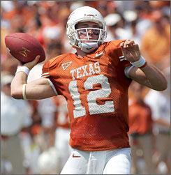 Most of the Big 12 offenses would prefer to score from 50 yards out (OU, OSU excepted). Give them 2nd and goal on your 5 yard line and they're moderately out of sorts -- lofting fades and hoping a QB draw out of an empty set can sneak in. We have a nice, active front four and though we have only one upper classman with traditional linebacker skills (Muckelroy), we're playing with some real passion and pride in the red zone. We are a Bend-But-Don't-Break-Defense. After the Mackovic years, hearing those words is like gargling with turpentine, but realize that there are passive and aggressive forms of that philosophy.
