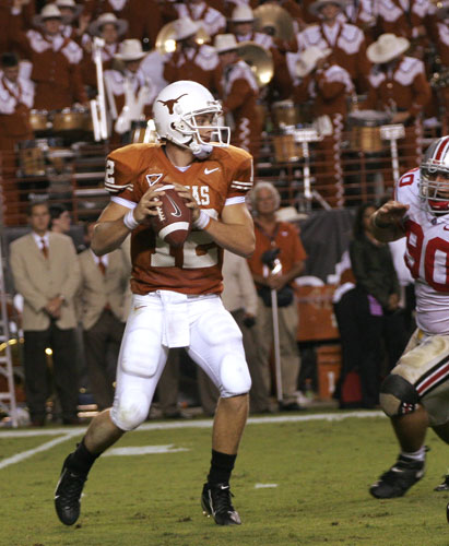 Trust Colt. We should put the game in his hands. There comes a time in a player's development when they're ready and you hand them the keys. This game isn't too big for Colt McCoy and he'll play with confidence. He's 1-1 as a starter against Oklahoma and his combined passing stat line is: